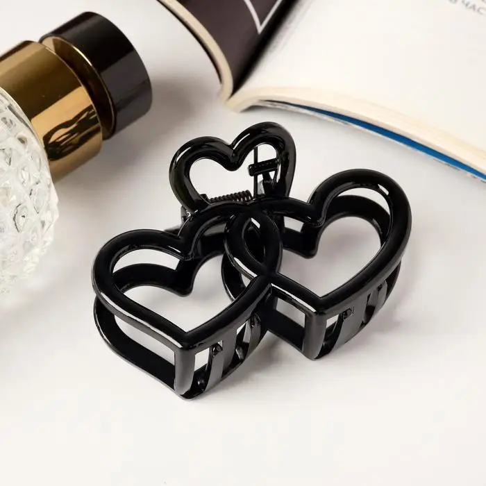 Крабик для волос «Глянец», сердца трио, 7×4.5 см, чёрный