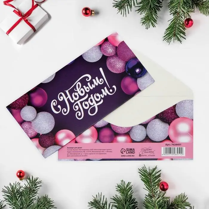 Конверт для денег «Новогодние шары», 16,5 х 8 см