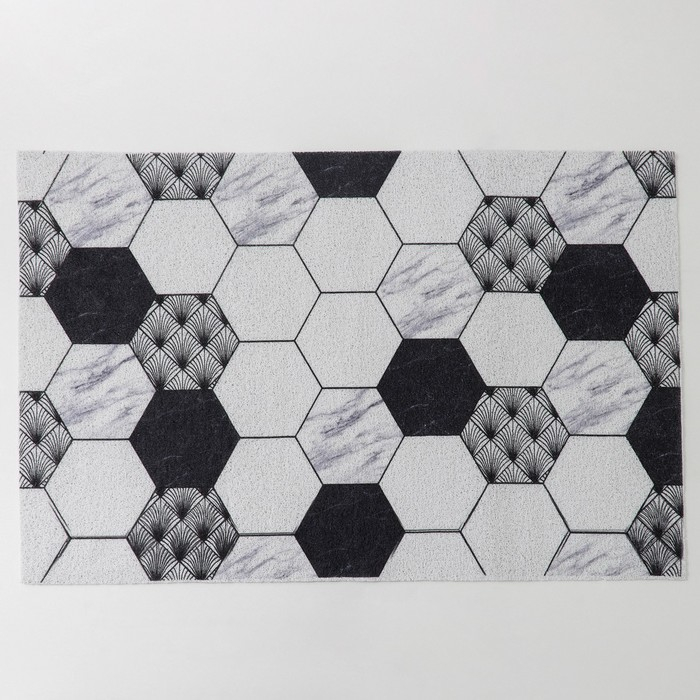 Коврик придверный грязезащитный Доляна «Мрамор», вырезной, 60×90 см, цвет серый