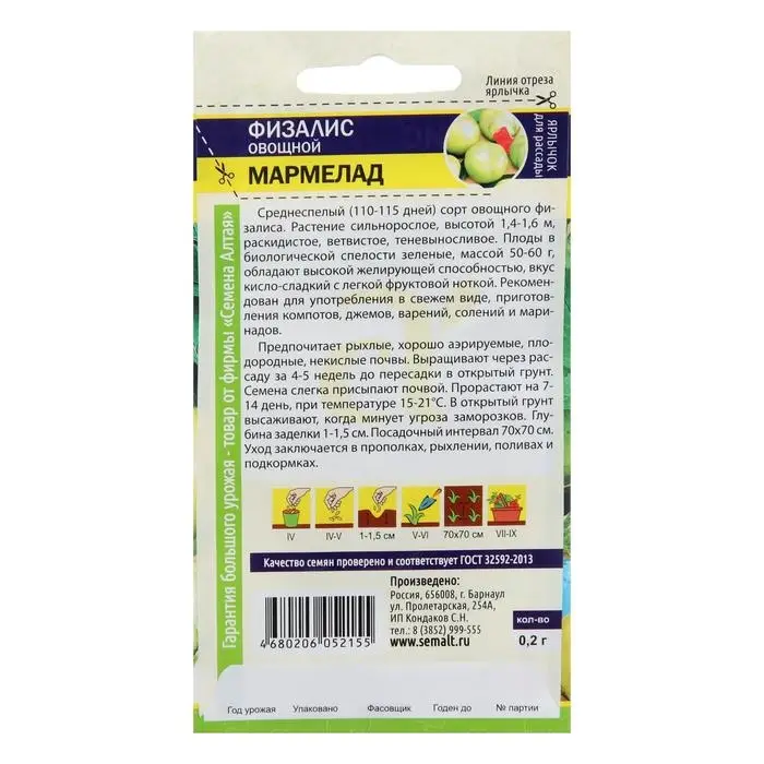 Семена Физалис "Мармелад", Сем. Алт, ц/п, 0,2 г