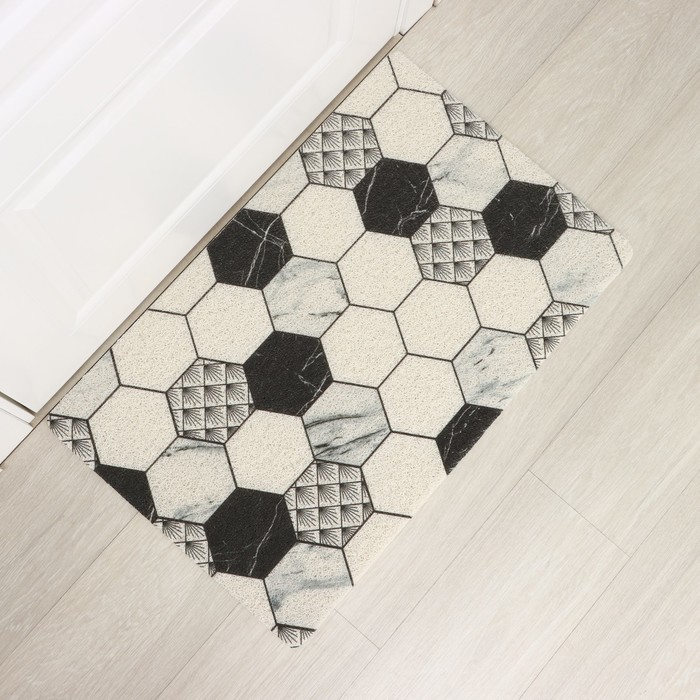 Коврик придверный грязезащитный Доляна «Мрамор», вырезной, 60×90 см, цвет серый