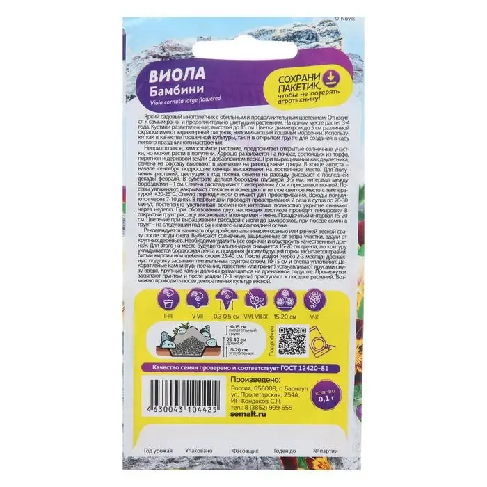 Семена цветов Виола "Бамбини", ц/п, 0,1 г