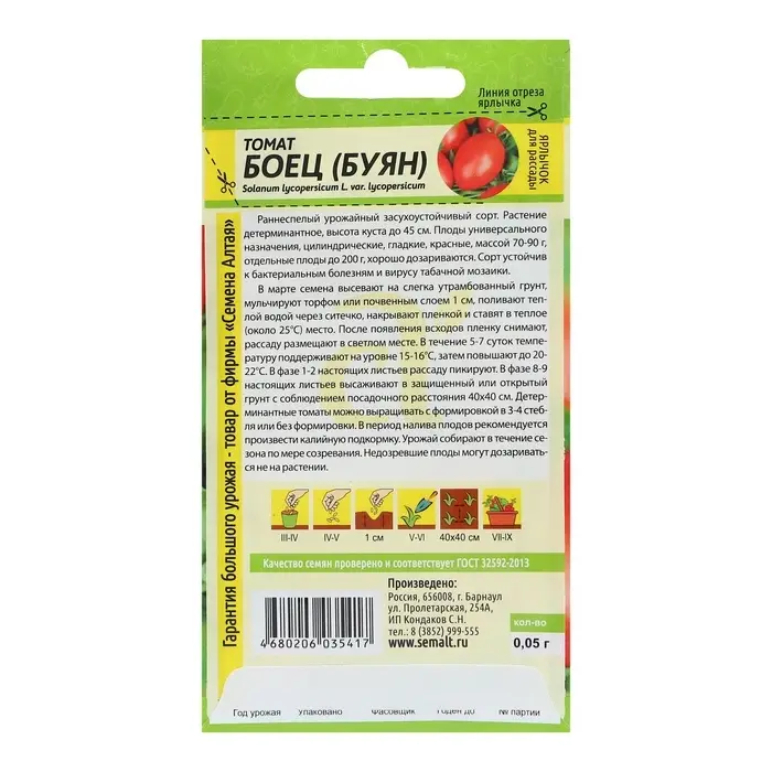 Семена Томат "Буян Боец", Сем. Алт, ц/п, детерминантный,низкорослый, 0,05 г