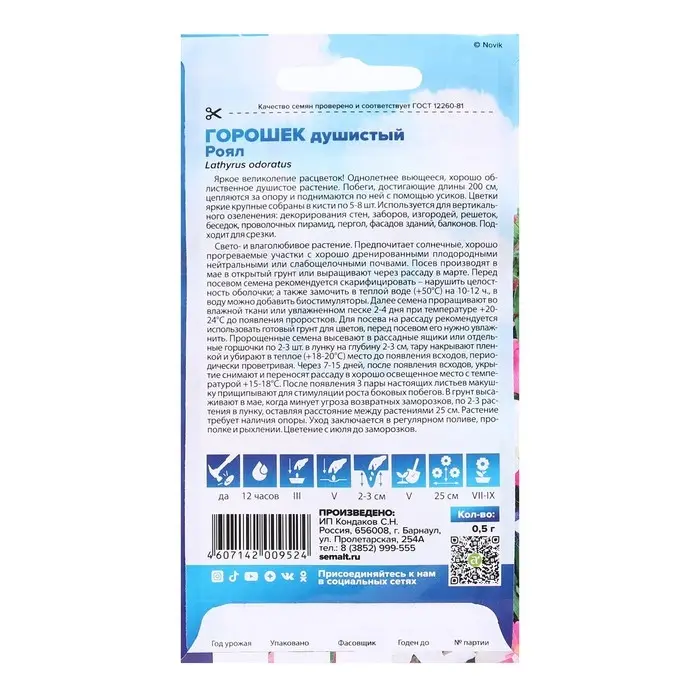 Семена цветов Душистый горошек "Роял", Сем. Алт, ц/п, 0,5 г