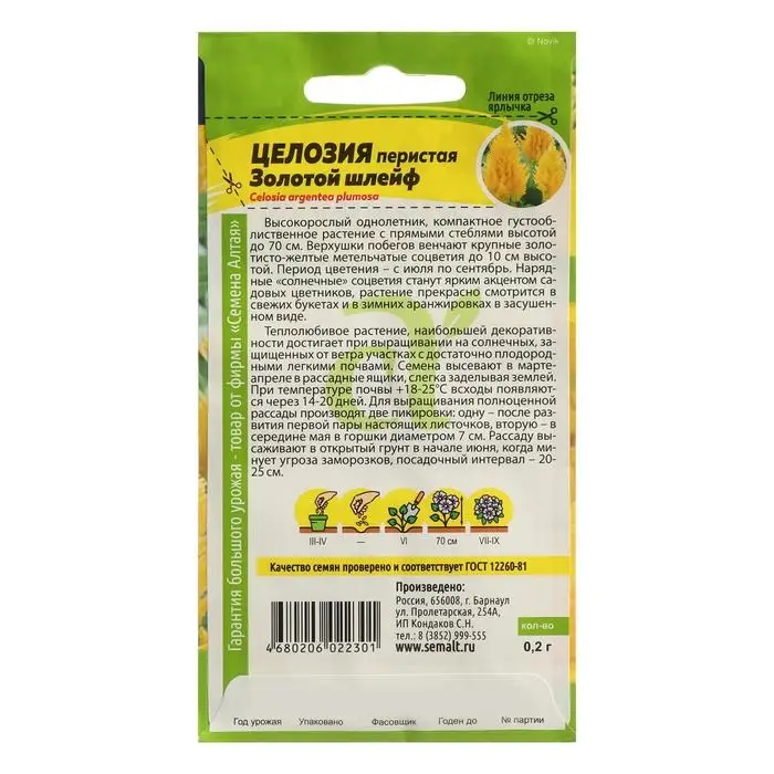 Семена цветов Целозия "Золотой шлейф", перистая, Сем. Алт, ц/п, 0,2