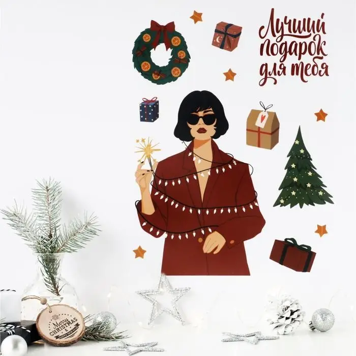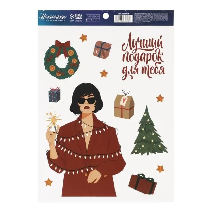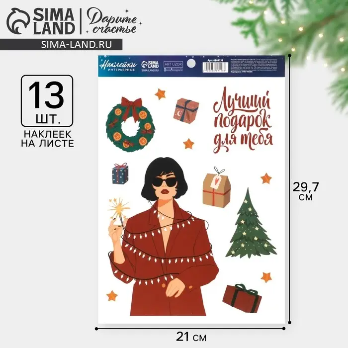 Наклейки интерьерные новогодние «Лучший подарок», 21 х 29.7 см