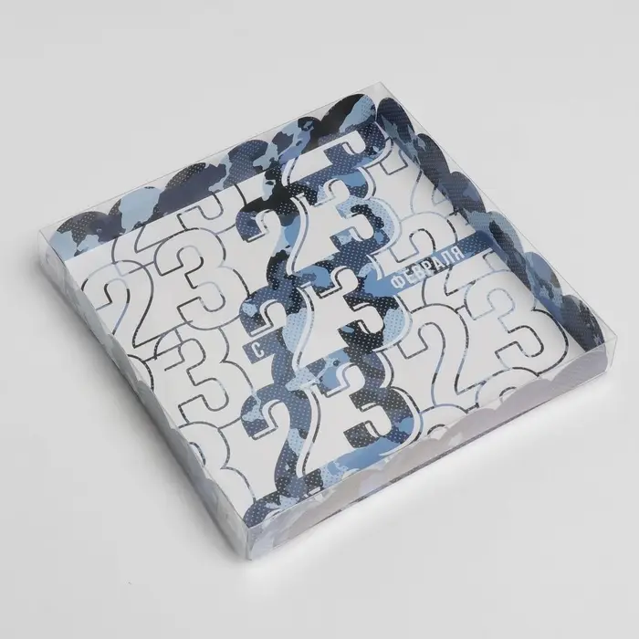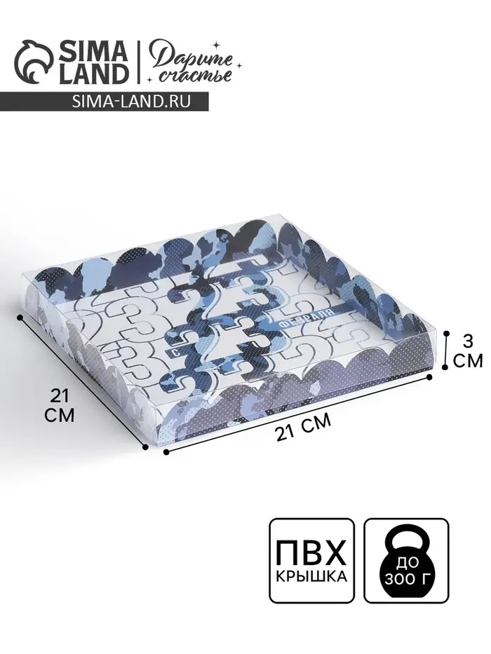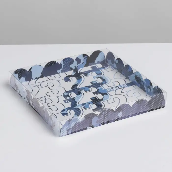 Коробка для печенья, кондитерская упаковка с пластиковой крышкой, «23 февраля», 21 х21 х 3 см