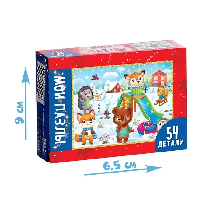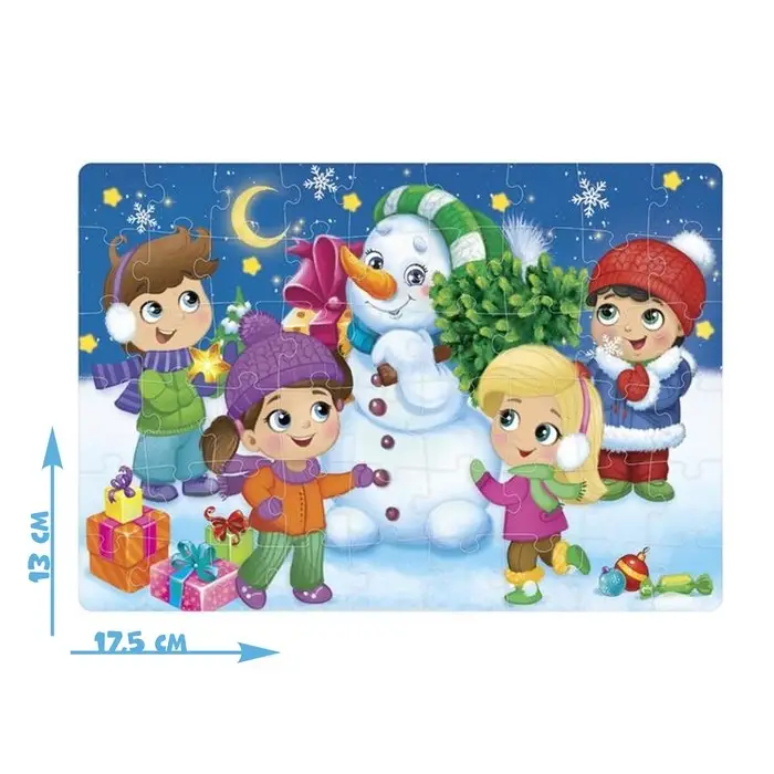 Ребёнок соберёт все 54 детали в одно целое и получит красочную картинку размером 17,5 × 13 см.