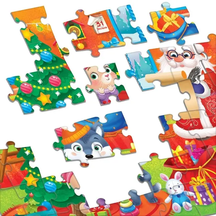 Пазл «Мы встречаем Новый год» — то, что нужно для полезного и интересного досуга! Такой подарок поможет ребёнку скрасить ожидание Нового года, а также потренировать мелкую моторику, внимательность, логическое мышление и память.