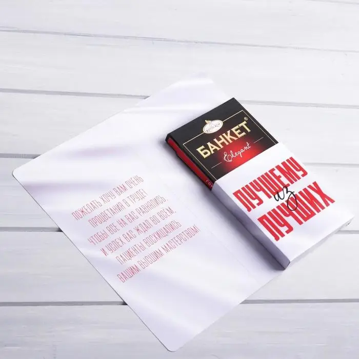 Открытка с местом под шоколадку, станет прекрасным подарком к празднику. Яркий дизайн, удобный формат и приятные эмоции обеспечены своему получателю.
