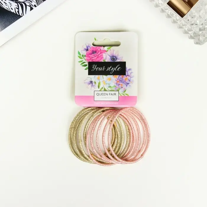 Резинка для волос "Спорт люкс" (набор 10 шт) блеск, 3 см, розово-золотой