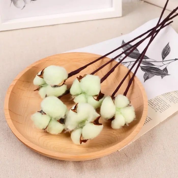 Декор сухоцвет "Хлопок" d-5 см 30 см, зелёный