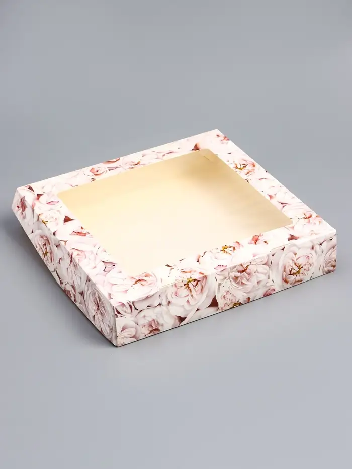Коробка складная с окном «Пионы», 20×20×4 см