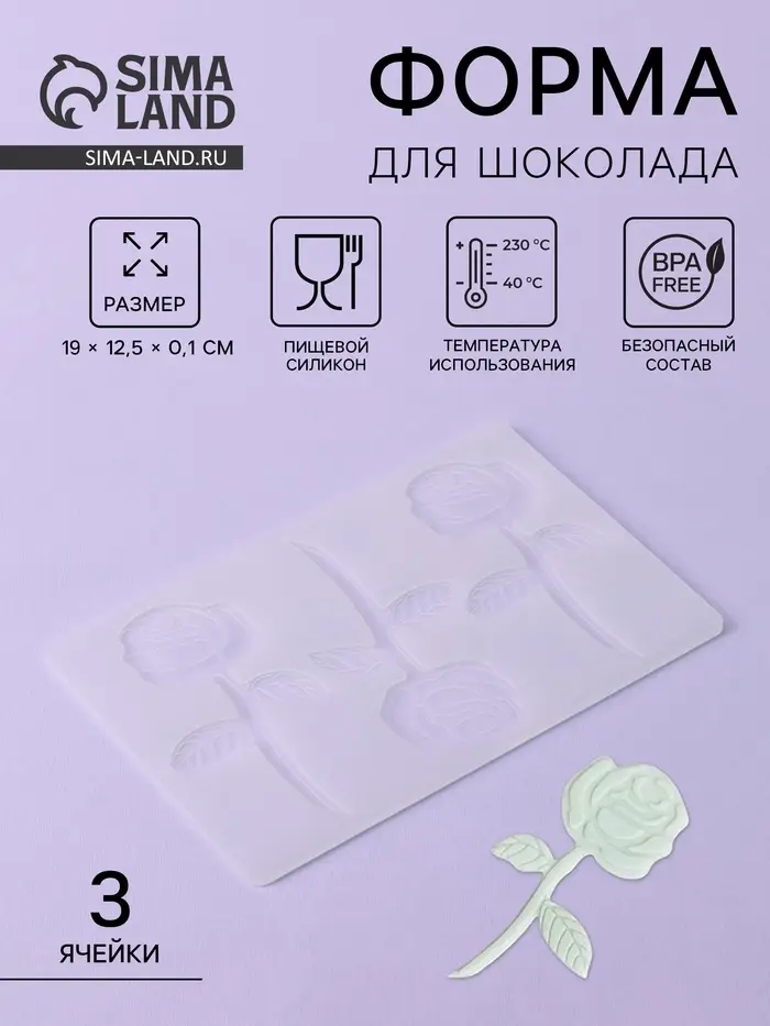 Форма для шоколада «Розы», силикон, 3 ячейки, 19×12.5×0.1 см, прозрачная