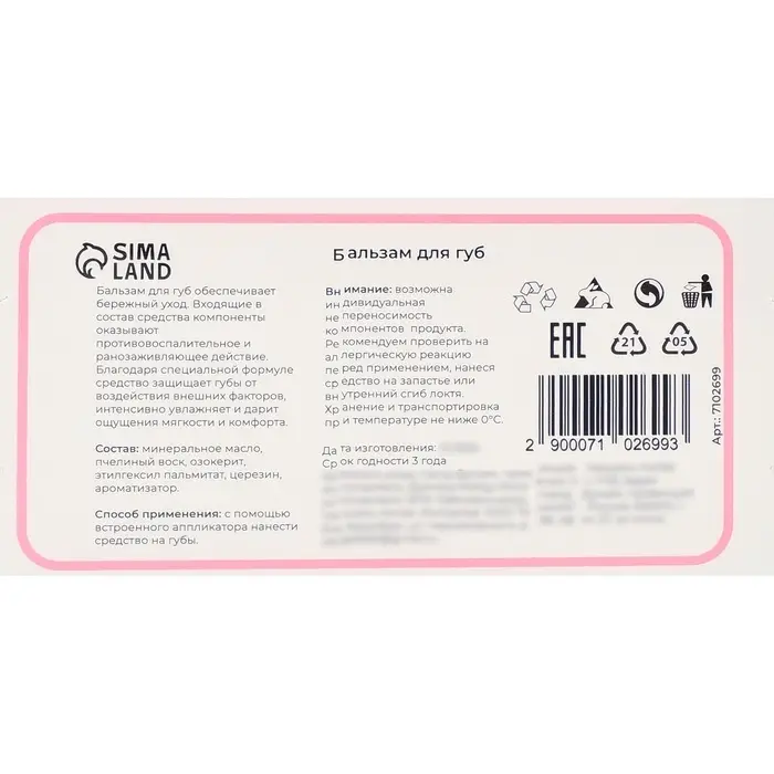 Бальзам для губ обеспечивает бережный уход. Входящие в состав средства компоненты оказывают противовоспалительное и ранозаживляющее действие.
