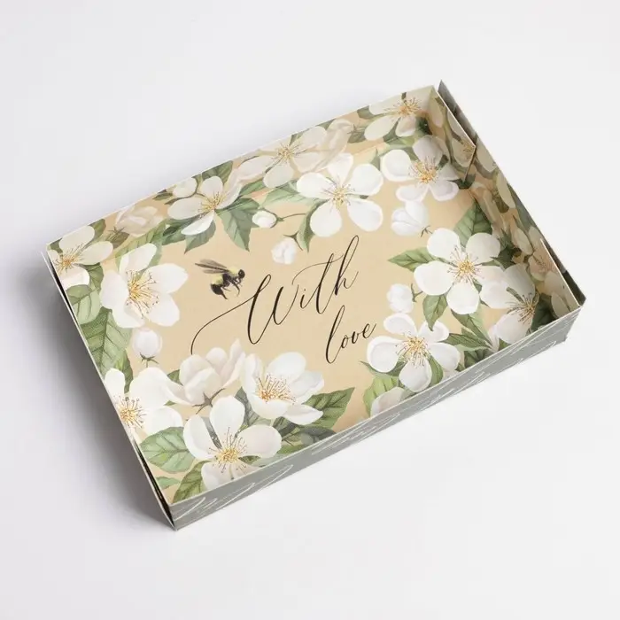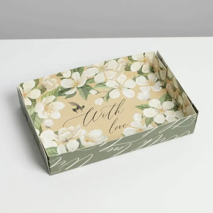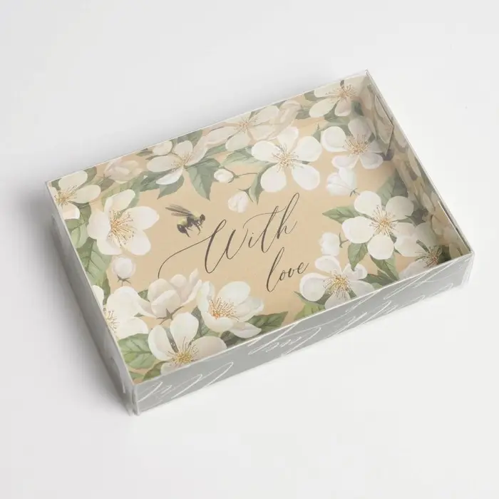 Кондитерская упаковка, коробка для макарун с PVC крышкой, With love, 18 х 12 х 3.5 см