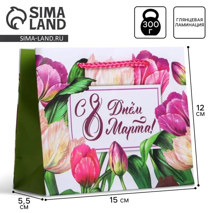 Пакет подарочный ламинированный, упаковка, «С днём 8 марта», S 12 х 15 х 5.5 см