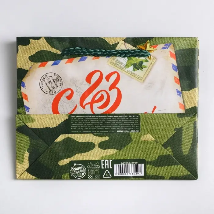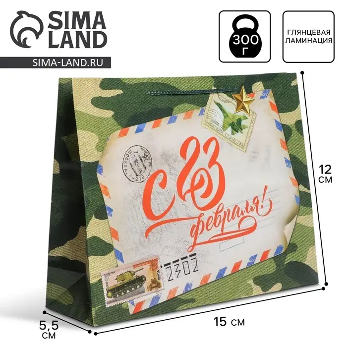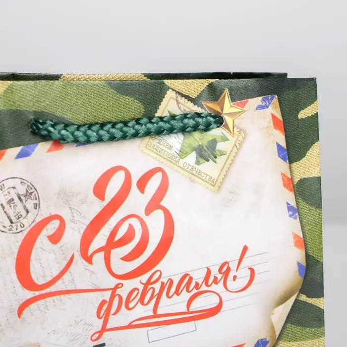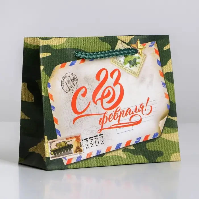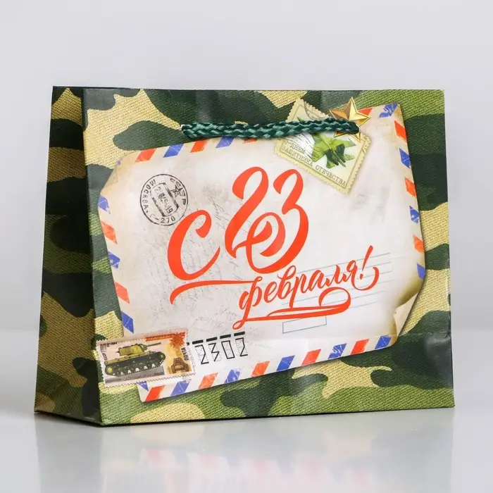 Пакет подарочный ламинированный, упаковка, «С 23 февраля», S 15 х 12 х 5.5 см