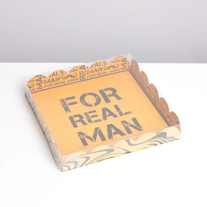 Коробка для печенья, кондитерская упаковка с пластиковой крышкой, «Для настоящего мужчины», 18 х 18 х 3 см