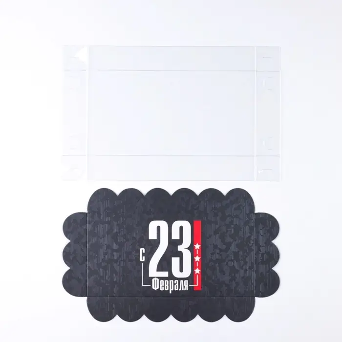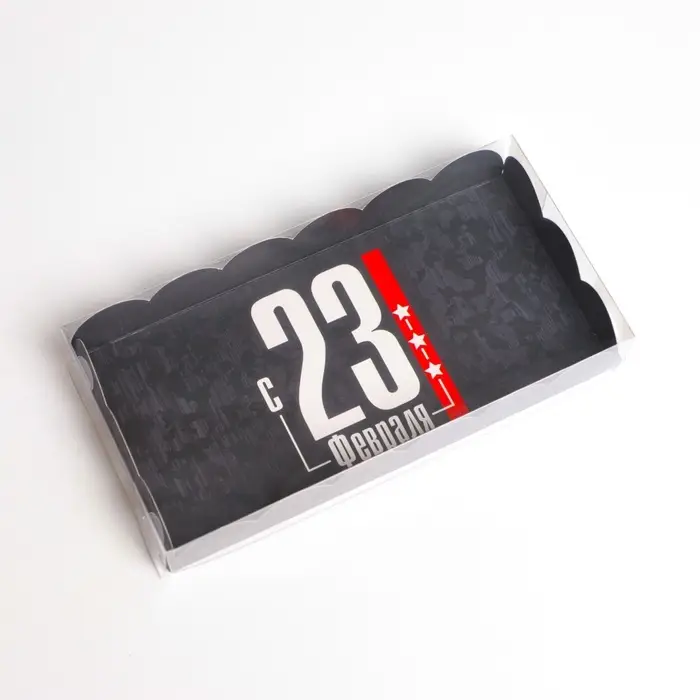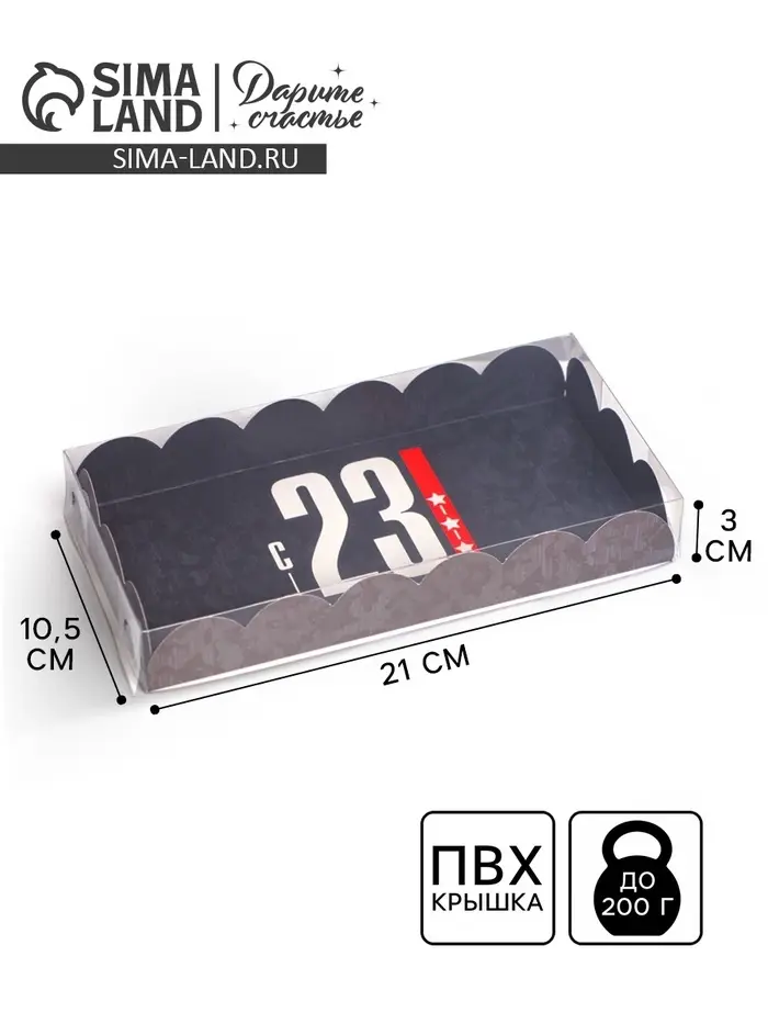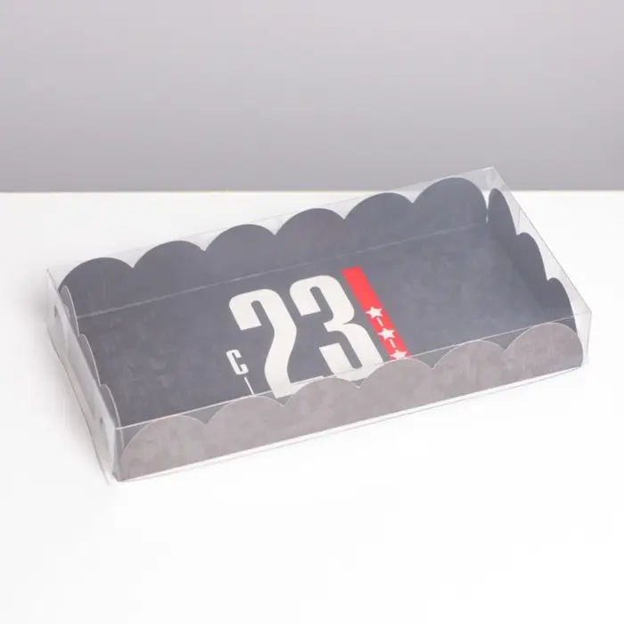 Коробка для печенья, кондитерская упаковка с пластиковой крышкой, «23 февраля», 10.5 х 21 х 3 см