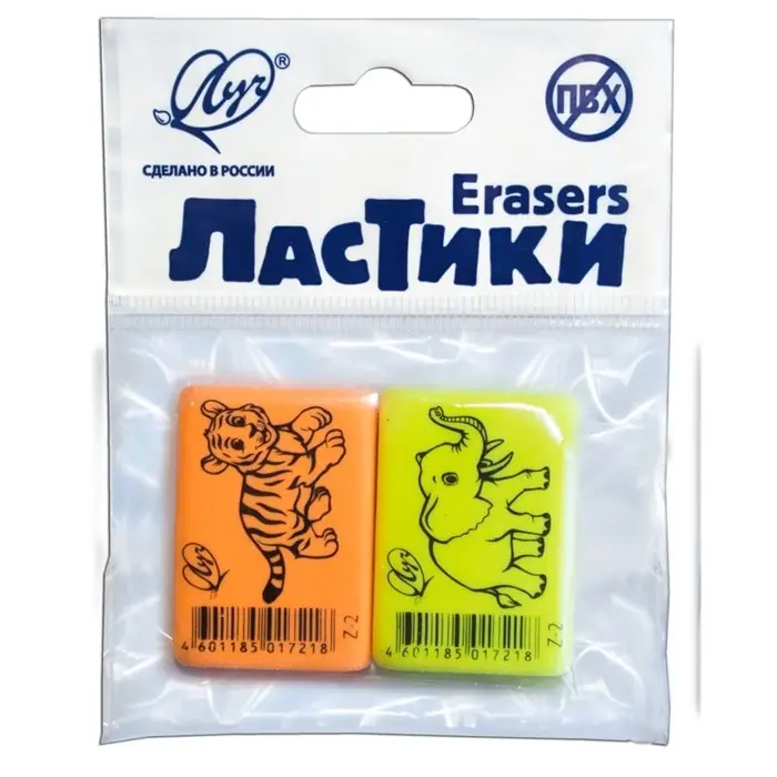 Набор ластиков 2 штуки Луч "ZOO", термопластичная резина (35 х 25 х 8 мм), МИКС
