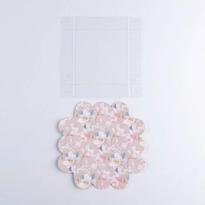Коробка для печенья, кондитерская упаковка с пластиковой крышкой, «Цветы», 10.5 х 10.5 х 3 см
