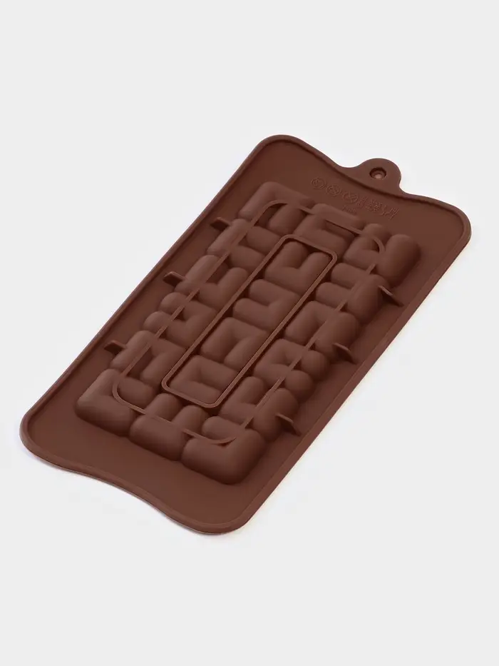 Форма для шоколада Доляна «Лабиринт», силикон, 22×11×1 см, 18 ячеек, коричневая