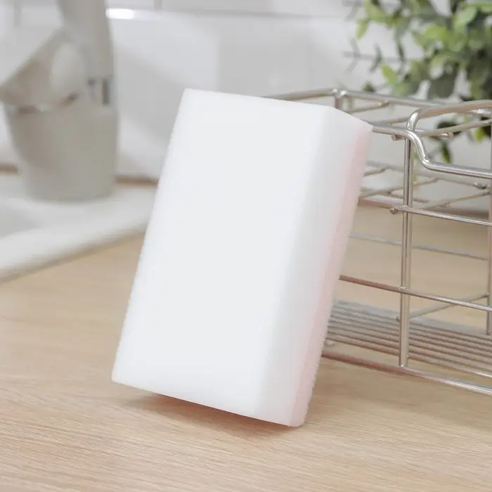 Меламин — пластик нового поколения, который выглядит как самая обычная губка, но имеет совершенно другую структуру. На ощупь он больше напоминает тонкую наждачную бумагу, но, что важно, не царапает очищаемые поверхности.