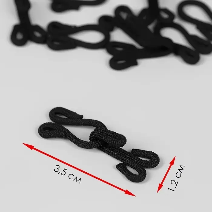 Крючок пришивной в оплётке, для верхней одежды, 35 × 12 мм, 5 шт, цвет чёрный