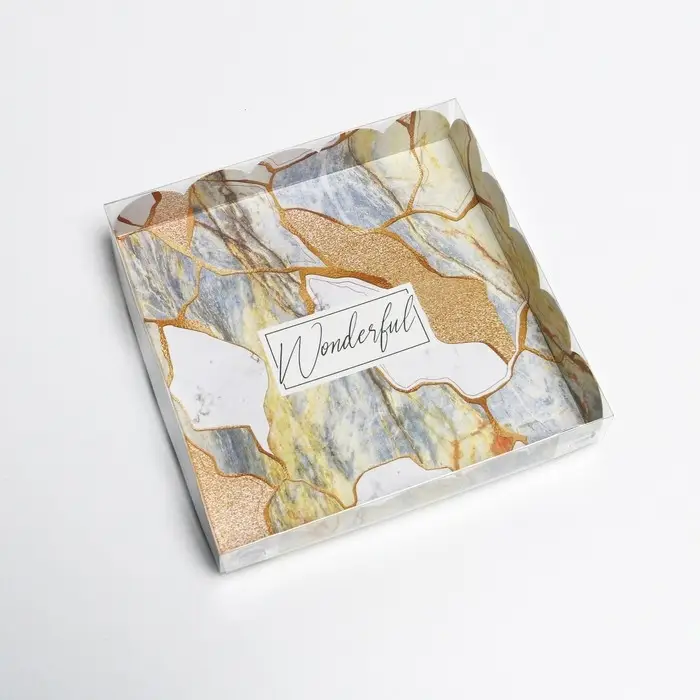 Коробка для печенья, кондитерская упаковка с пластиковой крышкой, «Камень», 18 х 18 х 3 см