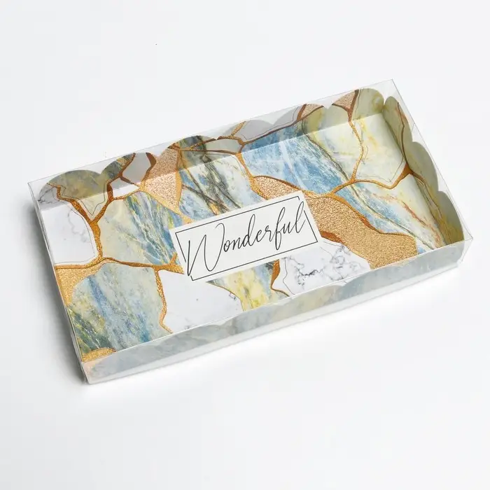 Коробка для печенья, кондитерская упаковка с PVC крышкой, голография, «Камень», 10.5 х 21 х 3 см