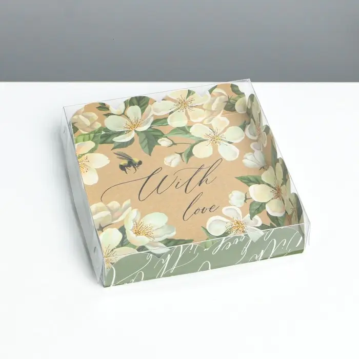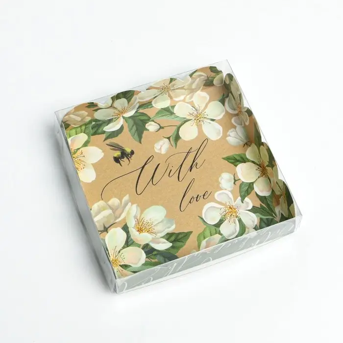 Коробка для печенья, кондитерская упаковка с пластиковой крышкой, «Пчёлка», 13 х 13 х 3 см