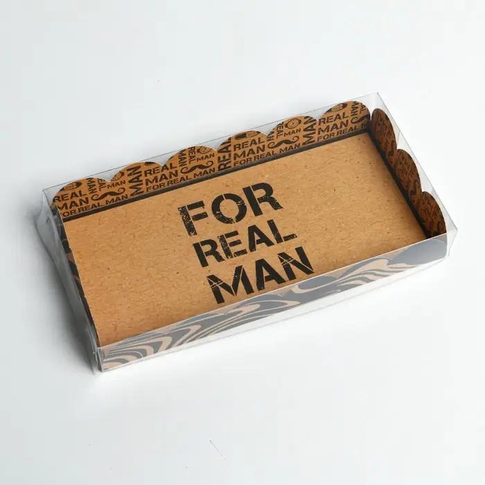 Коробка для печенья, кондитерская упаковка с пластиковой крышкой, «Настоящему мужчине», 10.5 х 21 х 3 см