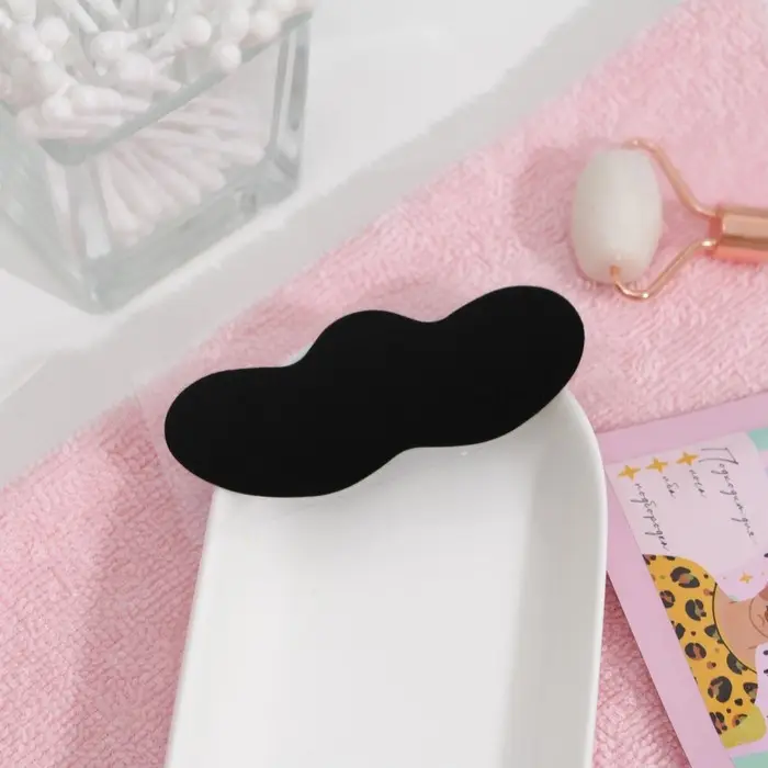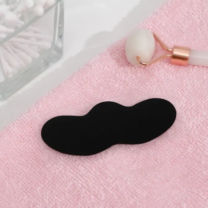 - Наклейте полоску тёмной блестящей стороной, предварительно сняв с него прозрачную пластиковую плёнку. Разгладьте полоску таким образом, чтобы она плотно прилегала к коже носа.