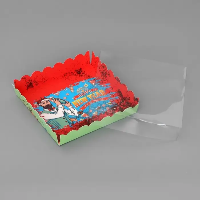 Коробка для печенья, кондитерская упаковка с PVC крышкой, «23 февраля», 21 х 21 х 3 см