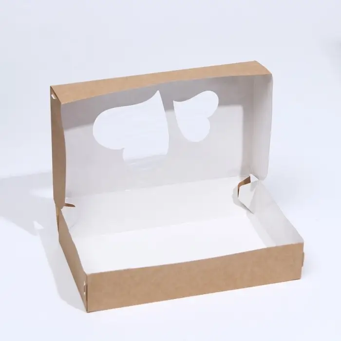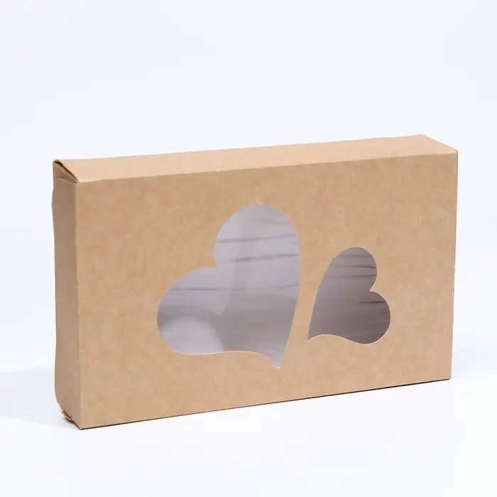 Коробка, складная, крафт, «Сердца», 20×12×4 см