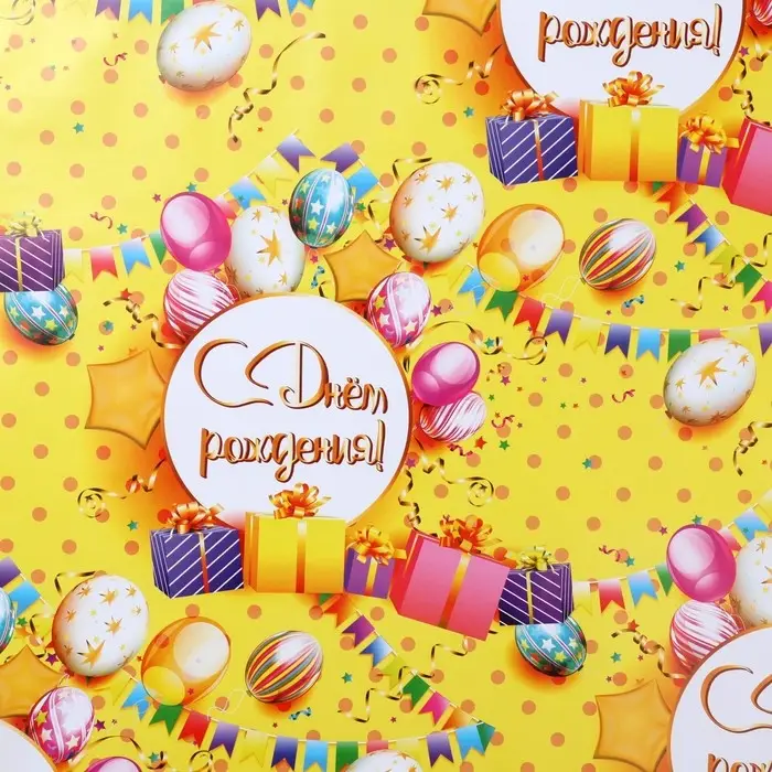 Бумага упаковочная, глянцевая "С днем рождения", подарки с шариками, 70 х 100 см, 1 лист