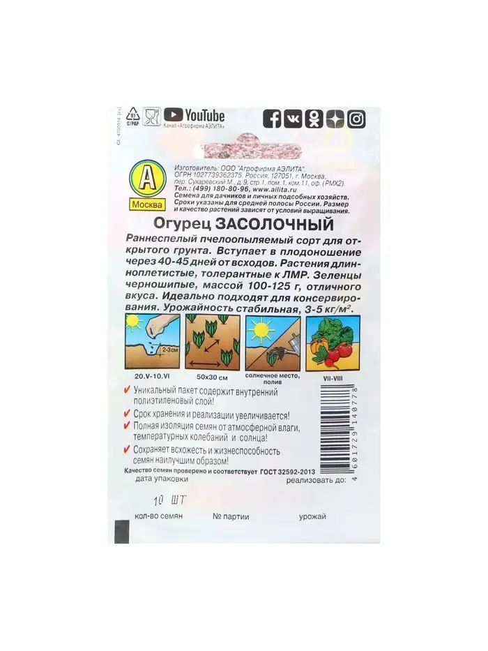 Семена огурца "Великолепная пятерка", F1,набор 5 шт