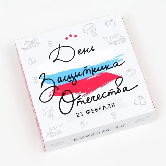 Коробка под 9 конфет с окном «С Днём Защитника Отечества», 13.7×13.7×3.5