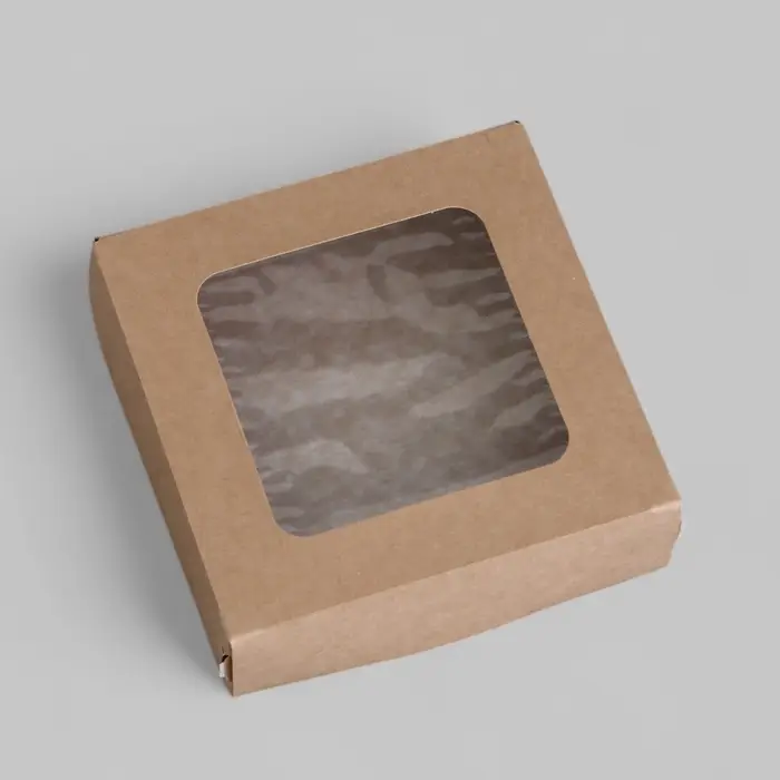 Коробка складная, с окном, крафтовая, 11.5×11.5×4 см
