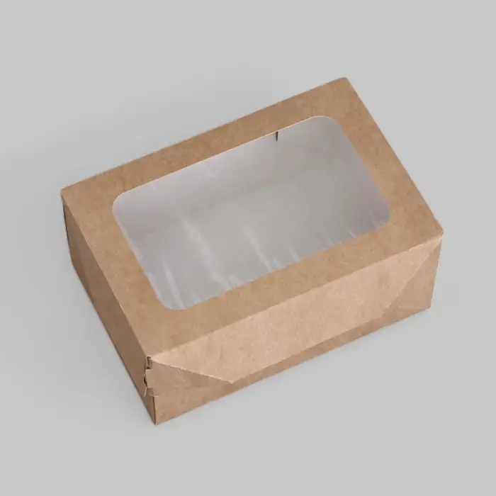 Коробка складная, с окном, крафтовая, 15×10×7 см