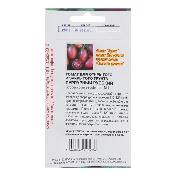 Семена Томат "Пурпурный русский", 20 шт