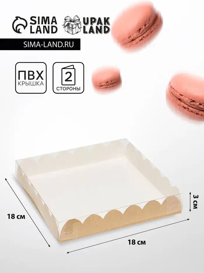 Коробка для печенья, крафт, 18×18×3 см