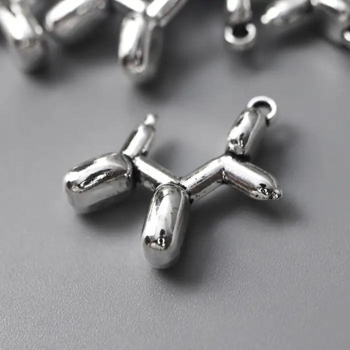 Металлический элемент, декоративная подвеска «Арт Узор. Надувной шарик: собака», серебро, 1.5×2 см