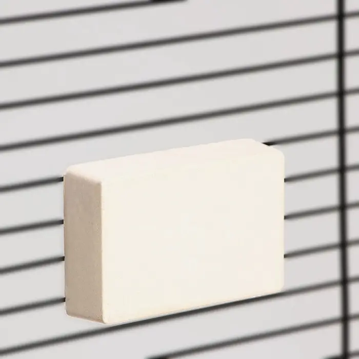 Удобное крепление позволяет закрепить камень на прутьях клетки.
