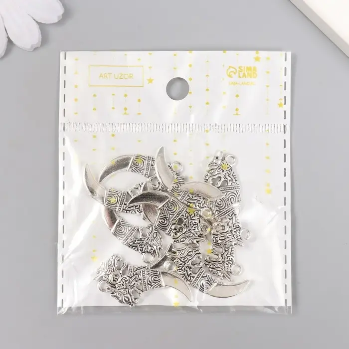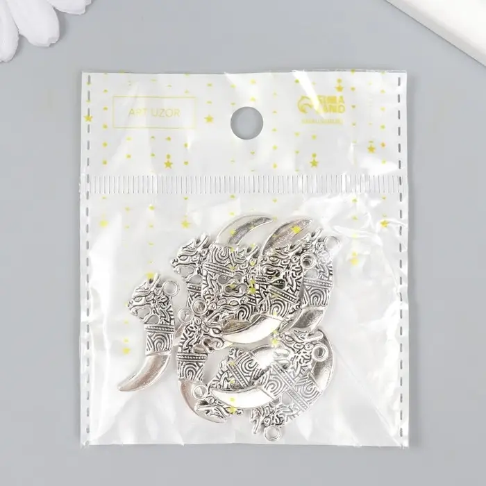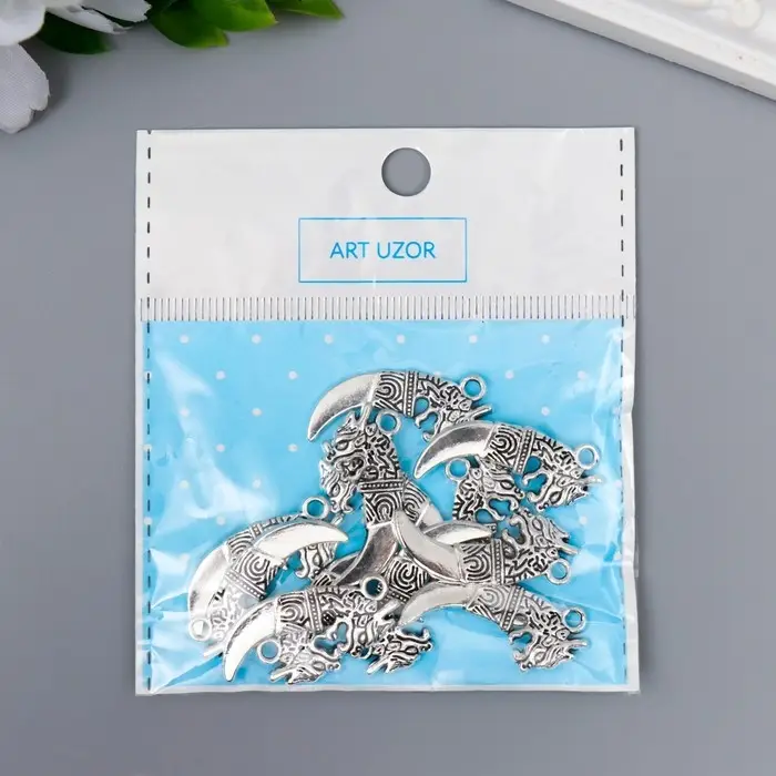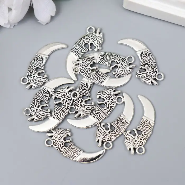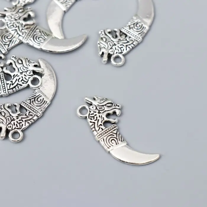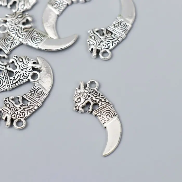 Металлический элемент, декоративная подвеска «Арт Узор. Клык дракона», серебро, 2.9×1.3 см