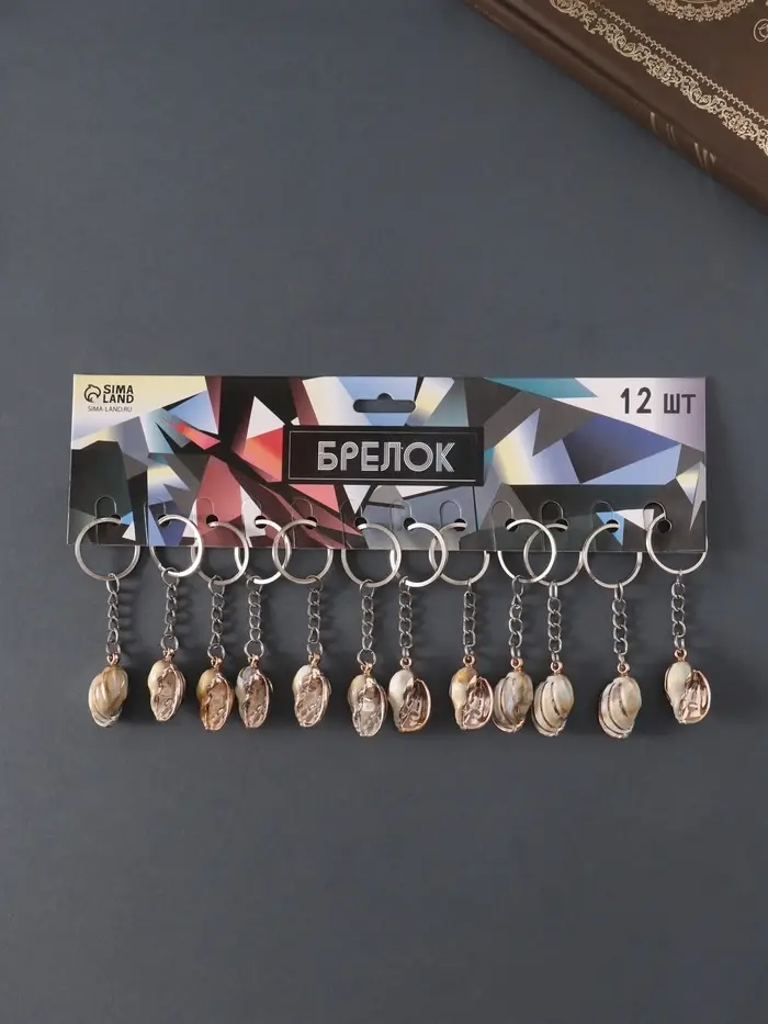 Брелок пластик "Ракушка в клетку" с золотом 3х2х1,2 см
