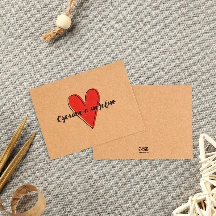 Открытка-мини для бизнеса «Сделано с любовью», крафт, 8×6 см