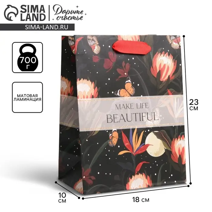 Пакет подарочный ламинированный, упаковка, «Make life», MS 18 х 23 х 10 см