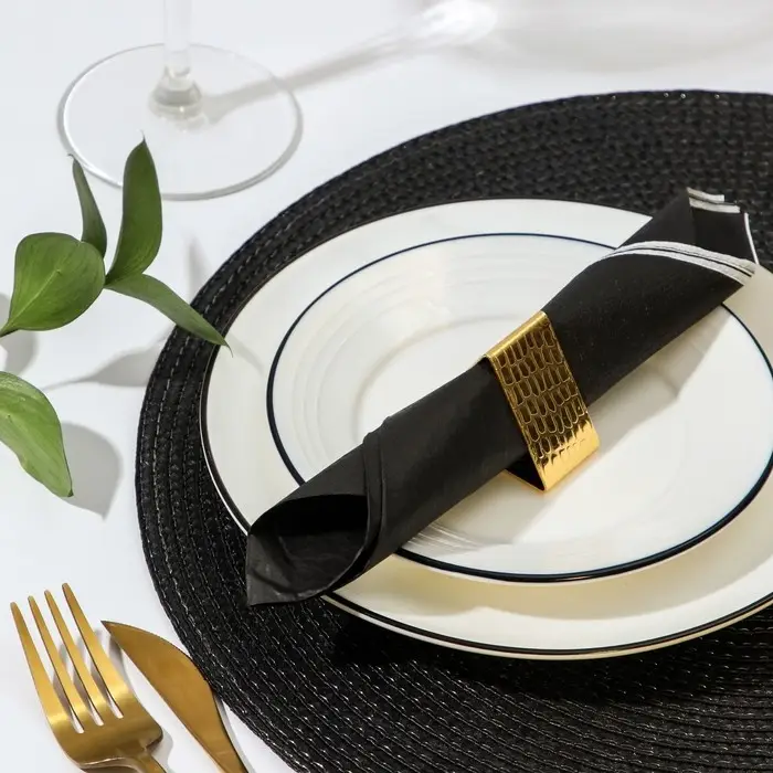 Кольцо для салфетки станет одним из любимых ваших аксессуаров. Возьмите свернутые в трубочку салфетки поместите их внутрь кольца. Такой вариант оформления стола идеально подойдёт для любых торжественных случаев.